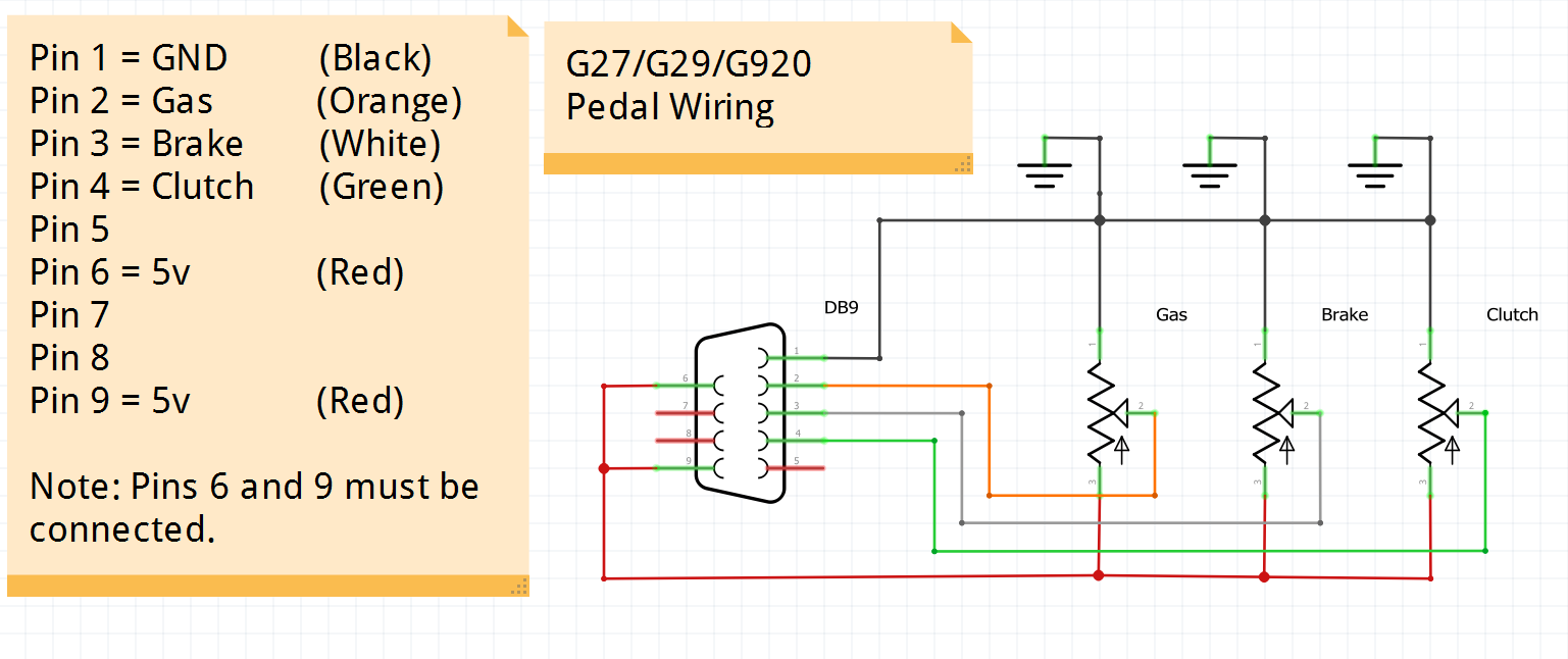 Pinout of the G29 pedals I found on reddit by /u/Mr-_-Thursday